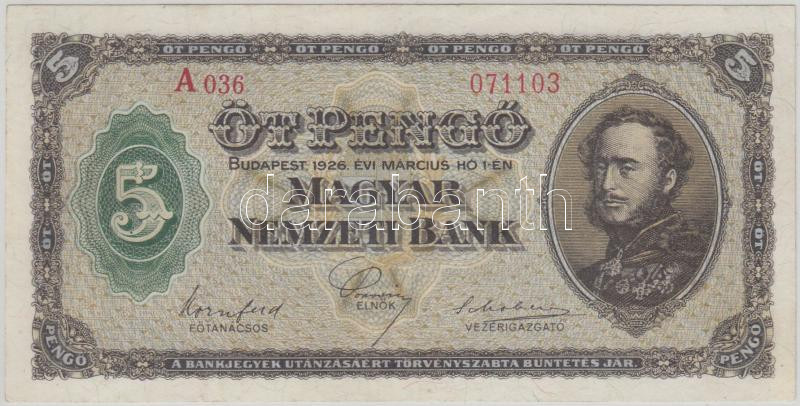 https://www.darabanth.com/en/197-Online-auction/197.0/Numismatics/Hungarian-Banknotes~400007/1926-5P-A-036-017703-Tharom-helyen-hajtasnyom-de-vasalt-szep-papir~II765029