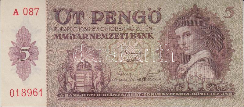 1939. 5P (2x) egymás utáni sorszámmal T:I