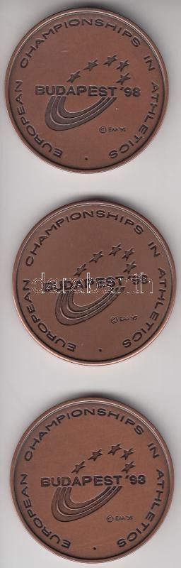 1998. Atlétika Európa Bajnokság-Budapest Br emlékérem "European Championships in Athletics-Budapest" 3db Br klf motívummal futás/távolugrás/kalapácsvetés T:1