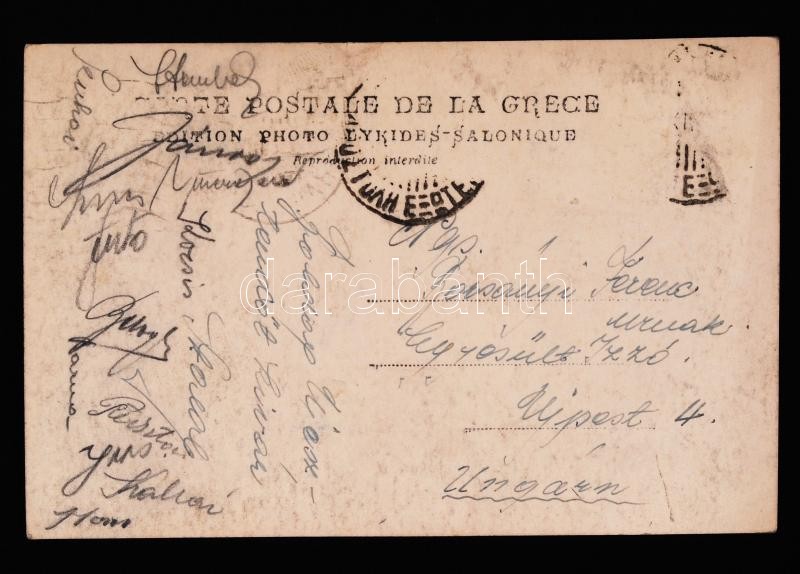 cca 1935 Újpesti labdarúgók által aláírt képeslap Görögországból Sternberg, Szalay, Futó, Vincze, Kállai, Barna, Jánosy