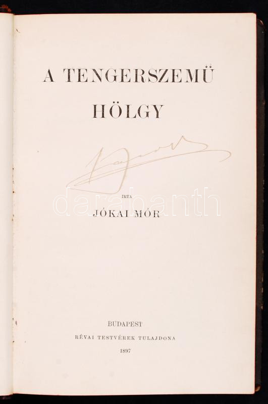 https://www.darabanth.com/en/197-Online-auction/197.0/Other-collectibles/Books-Other-rarities~600040/Jokai-Mor-A-Tengerszemu-holgy-Nemzeti-diszkiadas-Bp-1897-Revai-Aranyozott-felbor-ko~II758269