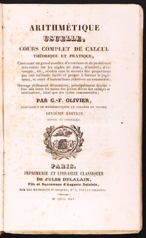 https://www.darabanth.com/en/197-Online-auction/197.0/Other-collectibles/Books-Science~600029/G-F-Olivier-Arithmetique-usuelle-curs-complet-de-calcul-Paris-1845-Jules-Delalain-251p~II764800