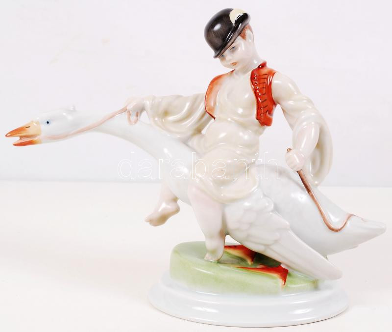 Herendi Ludas Matyi, kézzel festett, jelzett, hibátlan, m:26 cm, h:26 ...