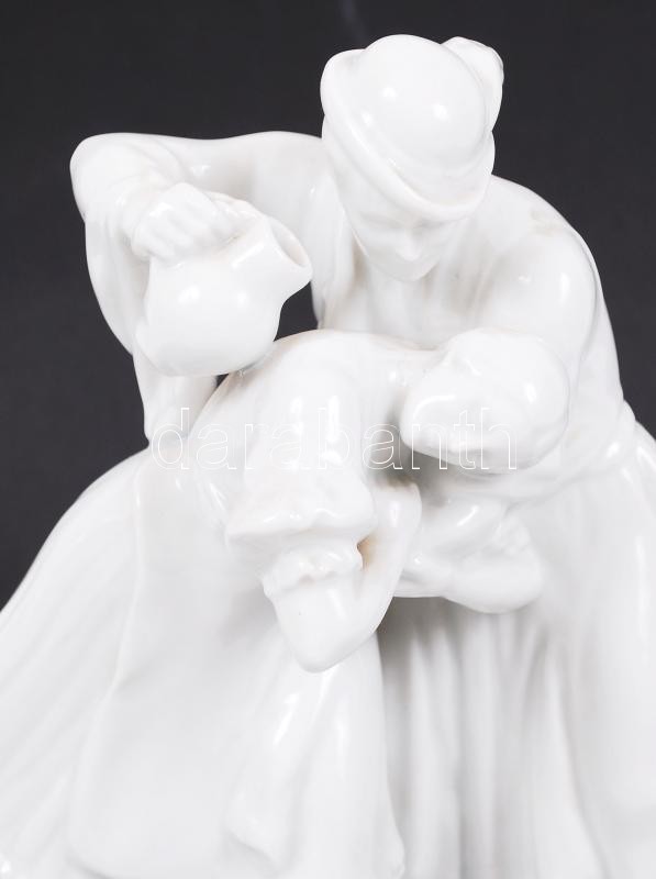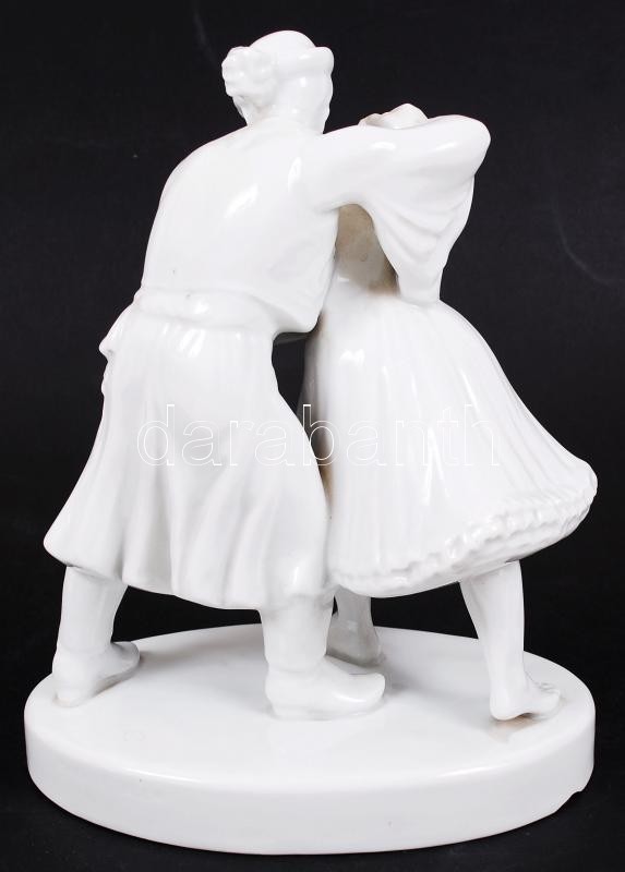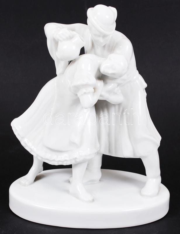 Herendi locsolkodó pár, fehér mázas, jelzett (mélynyomás), hibátlan, m:25 cm