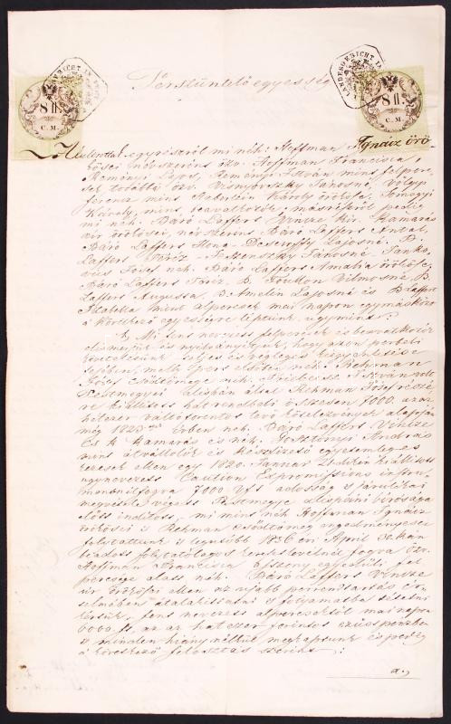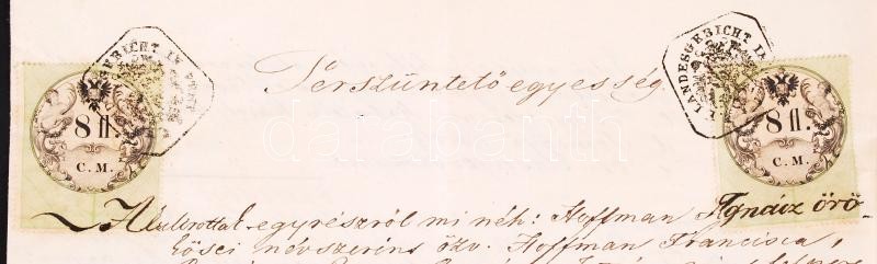 1857 Okmány 2 x 8fl CM okmánybélyeggel