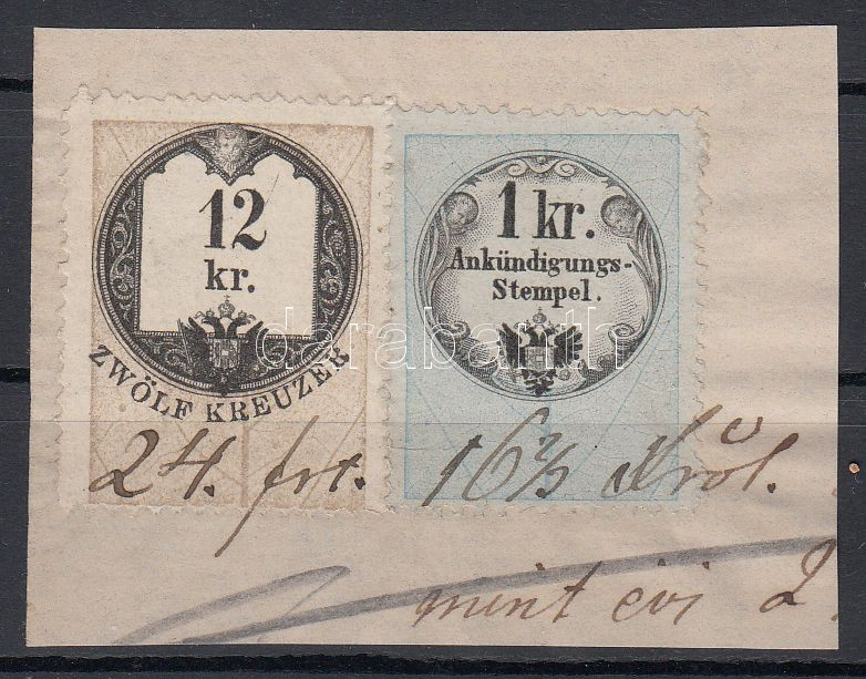 https://www.darabanth.com/en/197-Online-auction/197.0/Other-collectibles/Document-Stamps~600015/Okmanykivagas-12kr-okmanybelyeggel-plus-1kr-Hirdetmenybelyeggel~II763263