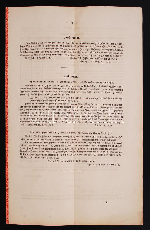 1787-1844 Magyar és német nyelvű rendelkezések a bányászattal és pénzv...