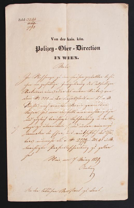 1839 A Bécsi Rendőr-főkapitányság levele Budára.