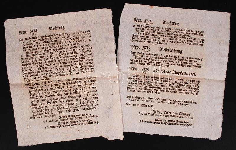 https://www.darabanth.com/en/197-Online-auction/197.0/Other-collectibles/Documents~600016/1839-Nemet-nyelvu-rendorsegi-korozes-egy-becsi-gyilkossag-utan-elrabolt-ertekekrol-2-l~II759698