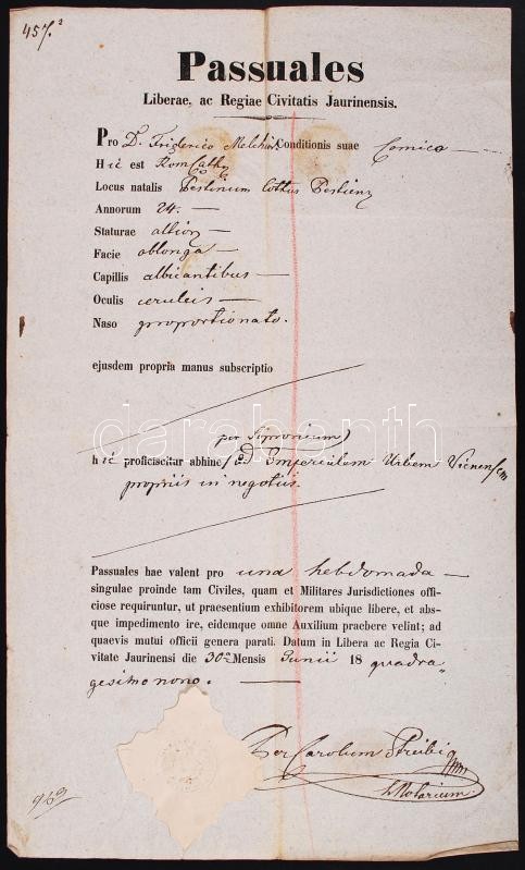 https://www.darabanth.com/en/197-Online-auction/197.0/Other-collectibles/Documents~600016/1849-Latin-nyelvu-utlevel-aljan-szarazpecsettel-hatoldalan-a-latogatott-helysegek-belye~II762235