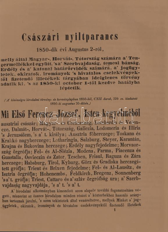 1850 Császári nyíltparancs, Jogügyletek, okiratok, irományok és hivata...