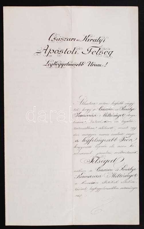 https://www.darabanth.com/en/197-Online-auction/197.0/Other-collectibles/Documents~600016/1907-miklosvari-Miklos-Bela-folyamodvanya-a-kiralyhoz-kamarasi-meltosag-adomanyozasaer~II763502
