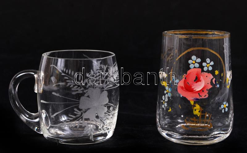 Emlékpoharak, egyik kézzel festett, hibátlanok, m:5 és 8 cm