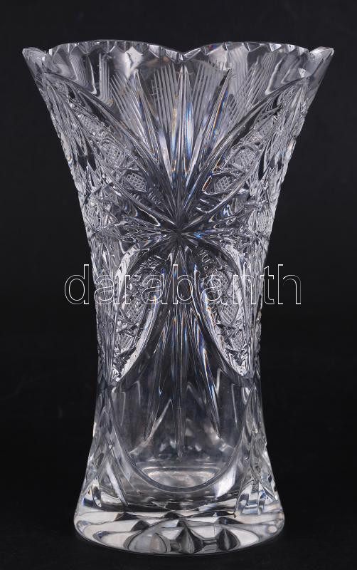 Ólomkristály üvegváza, csiszolt, hibátlan, m:20cm / Lead crystal vase