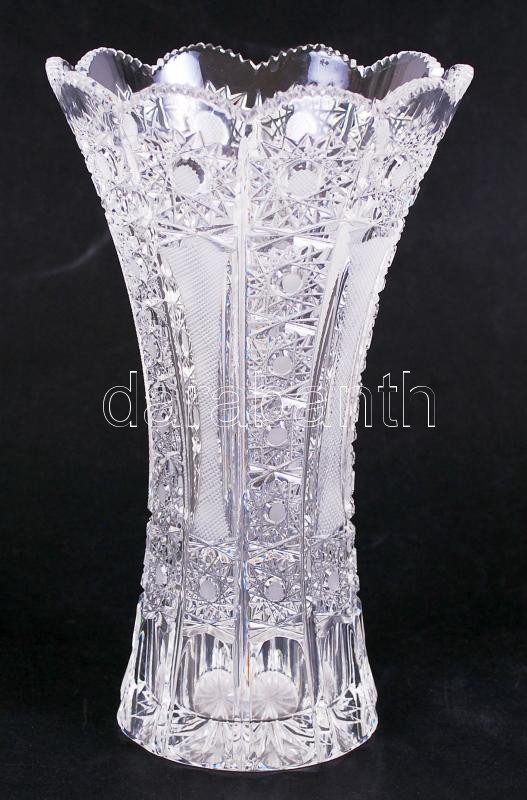 Ólomkristály váza, hibátlan, jelzett, csiszolt, metszett, m: 20 cm.