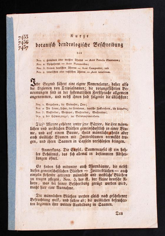 1811 Német nyelvű botanika leírások, 10 oldal.