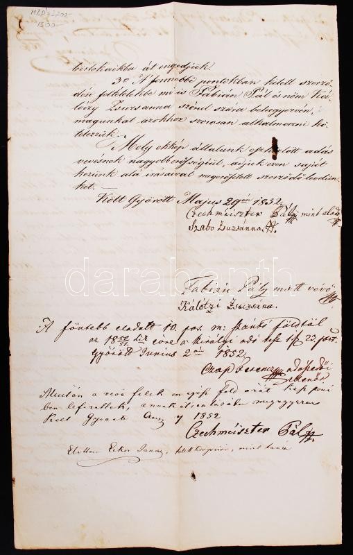 https://www.darabanth.com/en/197-Online-auction/197.0/Other-collectibles/Historical-documents-manuscripts~600017/1852-Gyor-Raab-Adas-veteli-szerzodes-3-guldenes-szignettas-papiron-Czechmeister-Pal-es-F~II761636