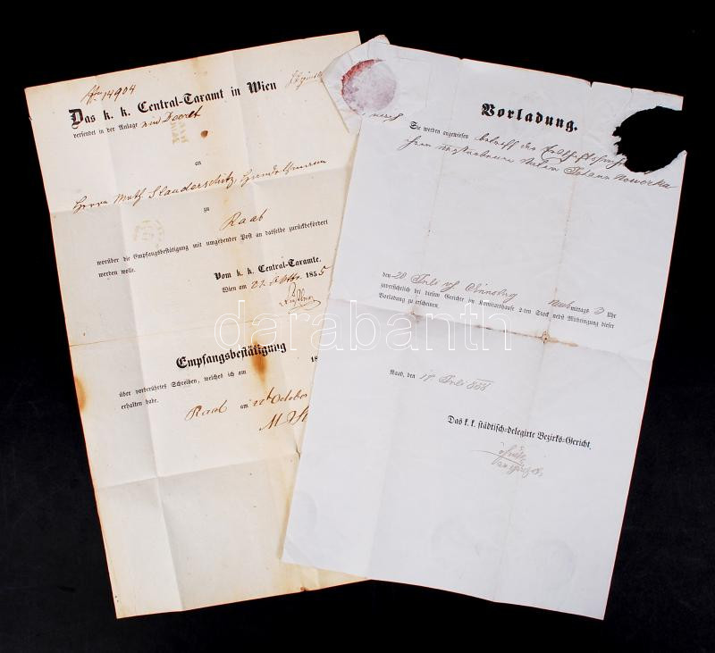 1858 Ex offo levelek Bécsből Győrbe (2 db).