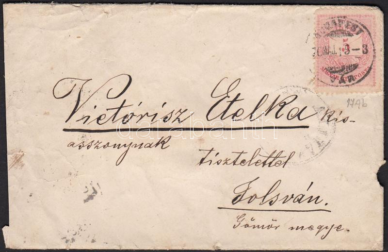 1876 Budapest, Budapestről Jolsvára küldött levélboríték Tornallyán ke...