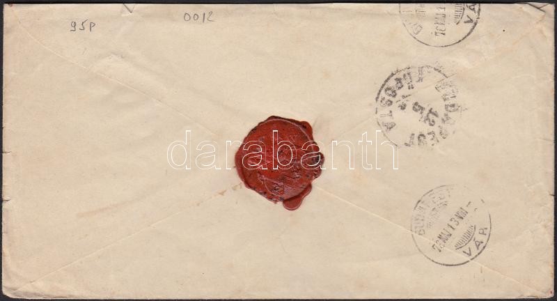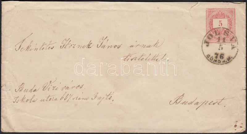 1876 Díszjegyes, vízjeles boríték Jolsváról Budapestre egész viaszpecséttel.