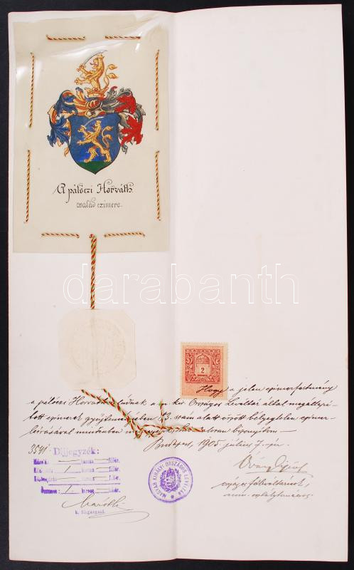 https://www.darabanth.com/en/197-Online-auction/197.0/Other-collectibles/Historical-documents-manuscripts~600017/1905-A-paloczi-Horvath-csalad-cimerenek-hivatalos-igazolasa-kezzel-festett-cimerrel~II763489