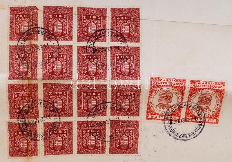 1927 Shell-féle benzinkút kézzel készített tervrajza Dabeg-féle telítőrendszer szerint hátoldalán illetékbélyegekkel.