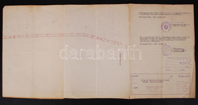 1962 Mosonmagyaróvár, a Darnózseli és Ásványráró közötti útszakasz kisajátítási terve és tervrajza.
