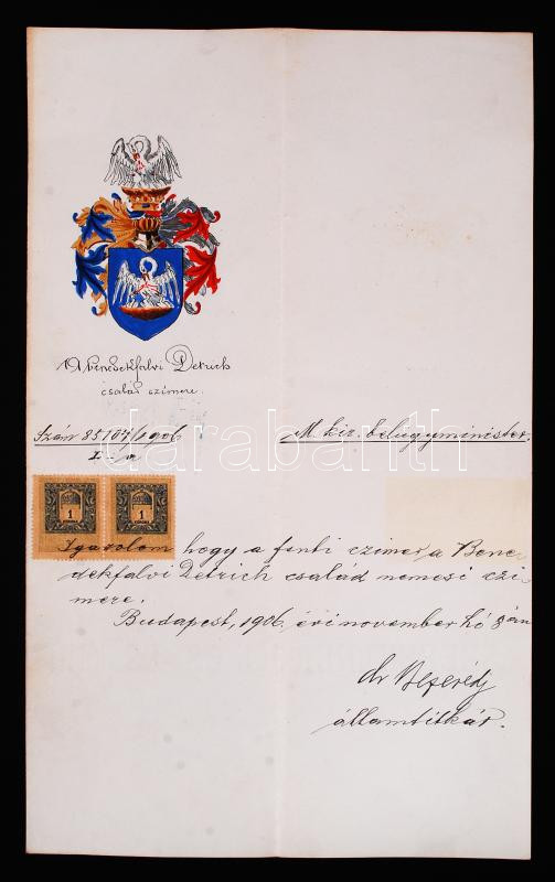 https://www.darabanth.com/en/197-Online-auction/197.0/Other-collectibles/Historical-documents-manuscripts~600017/A-benedekfalvi-Dietrich-csalad-cimerenek-hivatalos-igazolasa-kezzel-festett-cimerrel~II763379