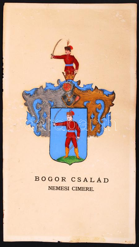 cca 1900 A Bogor család család kézzel festett címere 30x16 cm