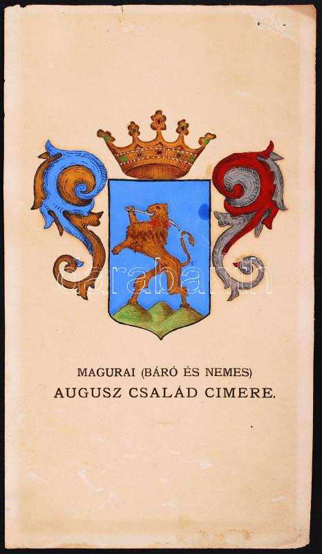 cca 1900 A magurai (báró és nemes) Augusz család kézzel festett címere 30x16 cm