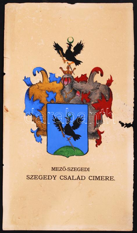 cca 1900 A mező szegedi Szegedy család kézzel festett címere 30x16 cm