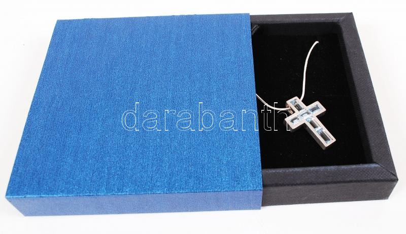 Ezüst (Ag.) függő, ezüst nyakláncon, kereszt forma topáz berakással, b...