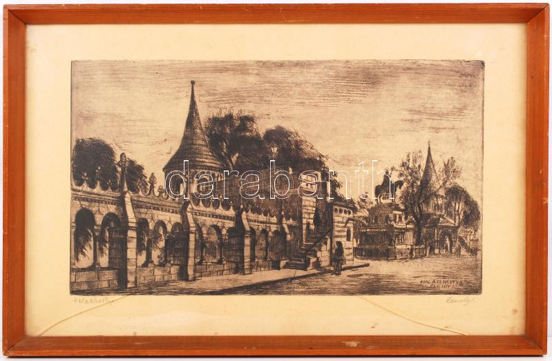 Élesdy István (1912-1987): Halászbástya. Rézkarc, papír, jelzett, törö...
