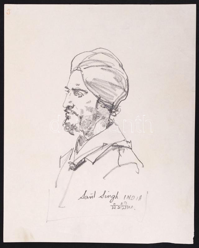 Márton Ferenc (1884-1940): 1933 Jaboree: Indiai cserkész. Ceruza, papí...