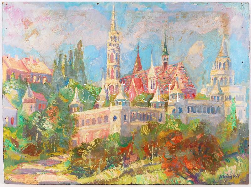 Szilvássy Pál (1920-1996): Halászbástya. Olaj, farost, jelzett, 59×80 ...