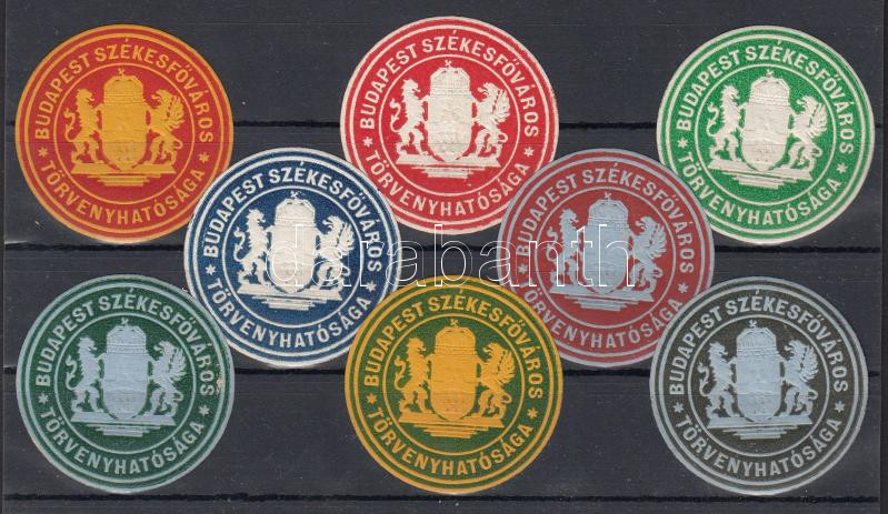 Budapest Székesfőváros Törvényhatósága 8 db klf színű pecsétbélyeg