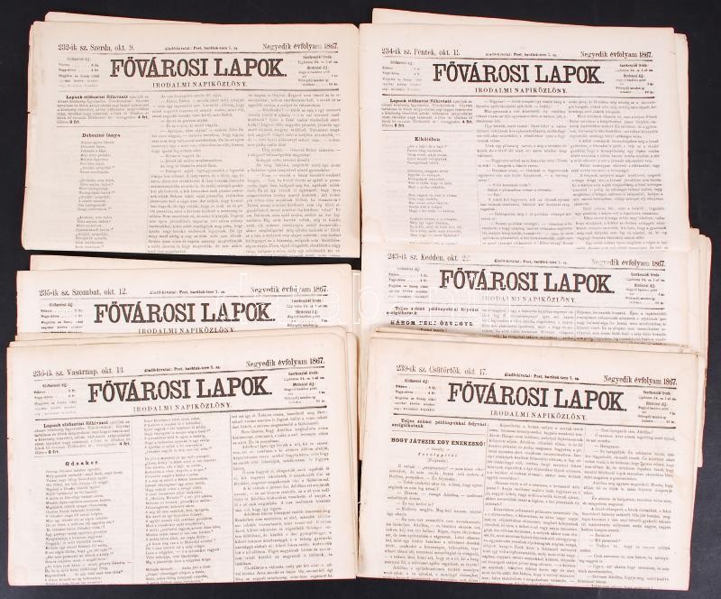 1866-1867 A Fővárosi Lapok 25 db jó állapotú száma, nagyrészt 1867-ből...