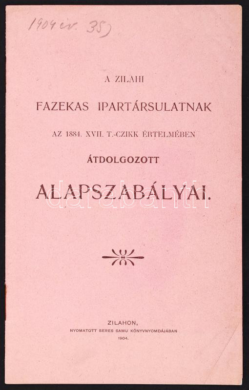1904 A Zilahi fazekas ipartársulat alapszabályai 16p.