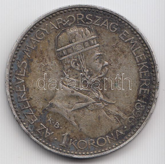 https://www.darabanth.com/en/198-Online-auction/198.0/Numismatics/Hungarian-metal-and-silver-coins~8/1896KB-1K-Ag-Millenium-T2~II767027