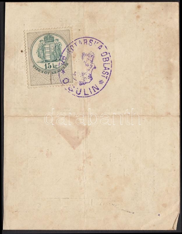 1897 Ogulin, Horvát Királyság által kiállított igazolvány szlovén és német nyelven ogulini béylegzővel, 15 krajcáros illetékbélyeggel /
