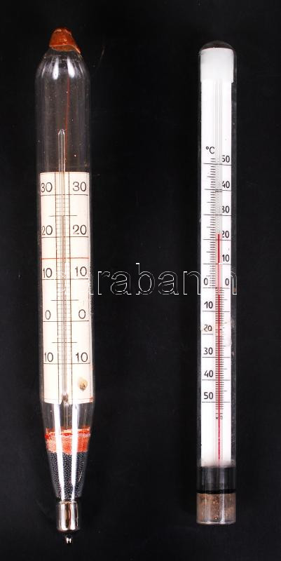 Description: 1 db Elite hagyományos akvárium hőmérő, régi (mérési tartomány:-10°C - +30°C) és 1 db ipari hőmérő tokkal, régi(mérési tartomány: -50°C - +50°C) /