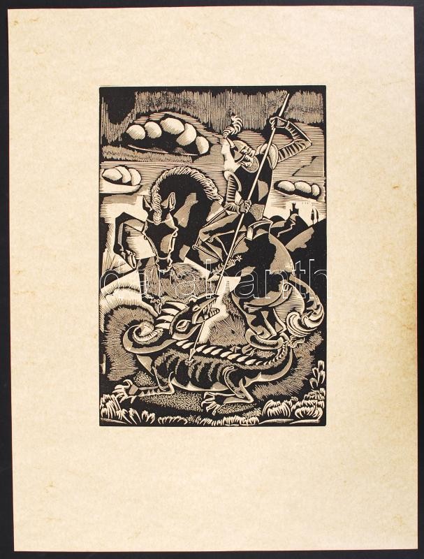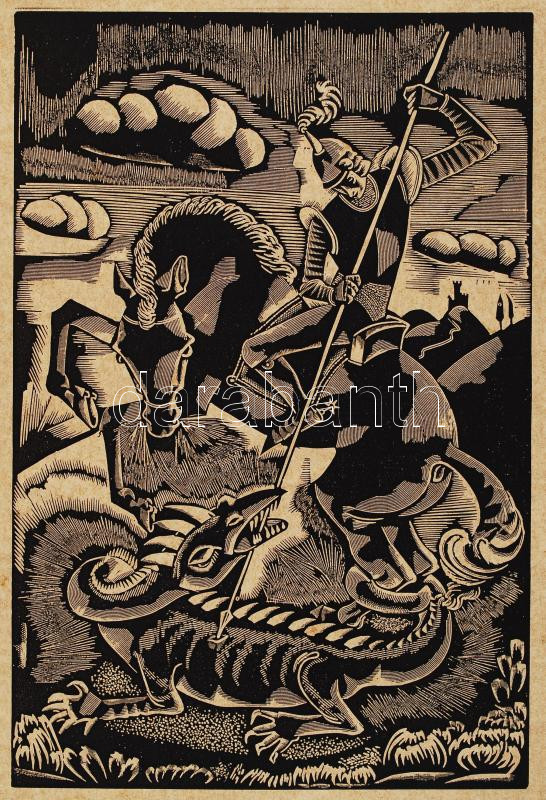 Molnár C Pál (1894-1981):Szent György legyőzi a sárkányt. Fametszet, p...