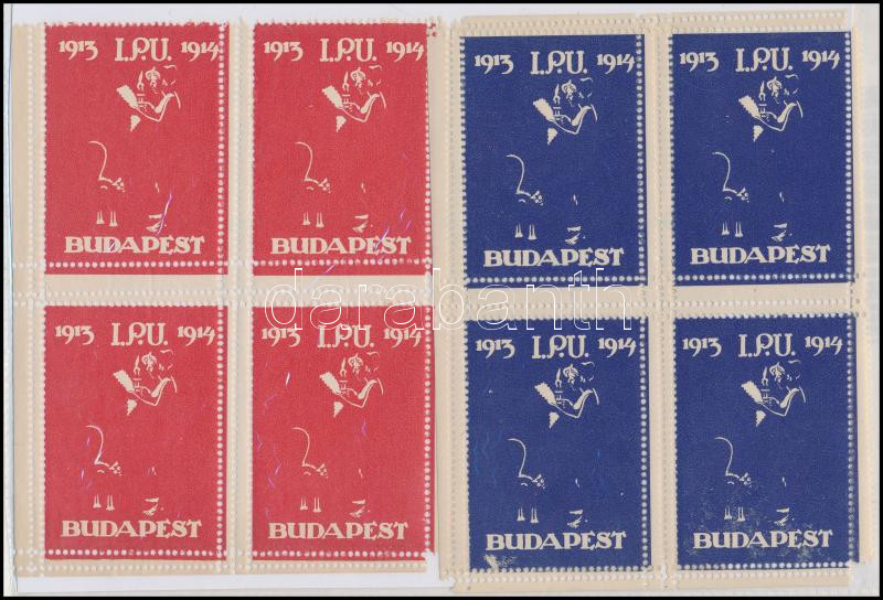1914 I.P.U. 1913-1914 2 klf levélzáró négyestömb, az egyik ívszéllel