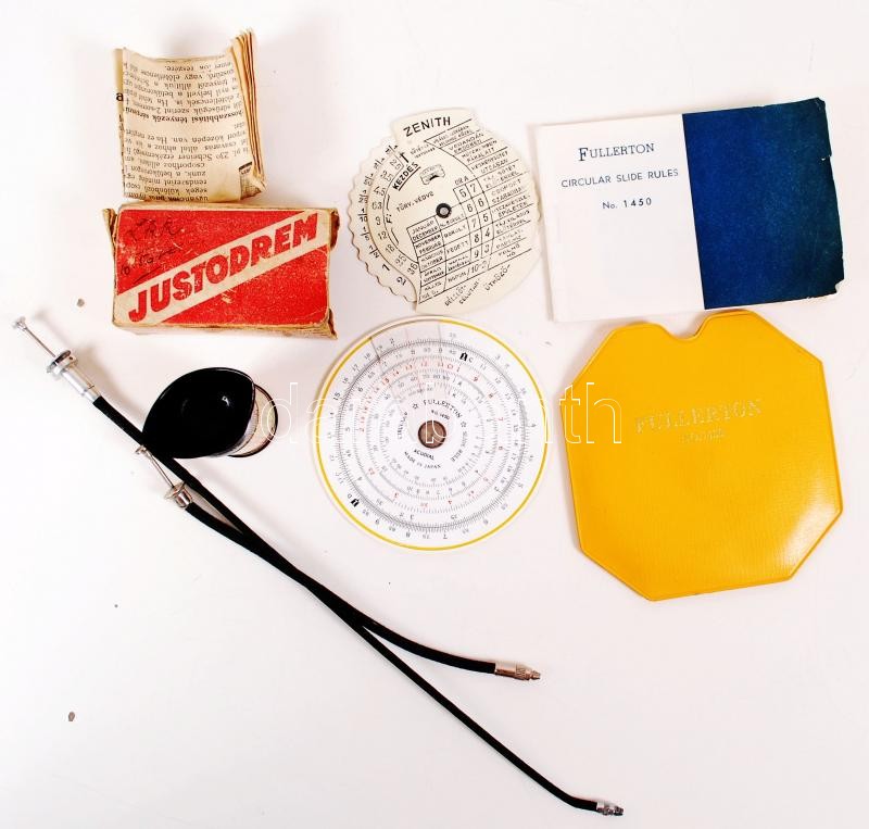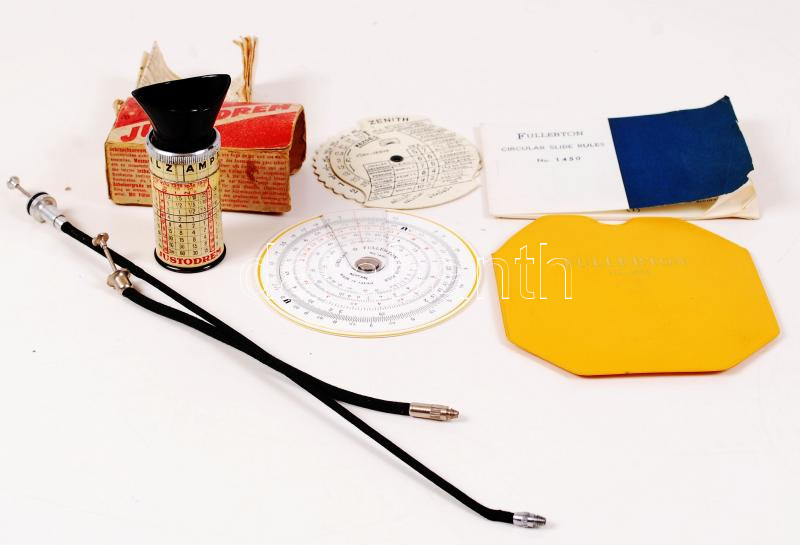 Régi fotós kellékek, pl. fénymérő.