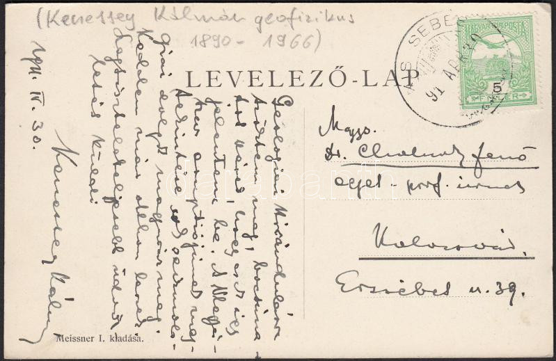 1911 Kenessey Kálmán geofizikus, meteorológus saját kézzel írt képesla...