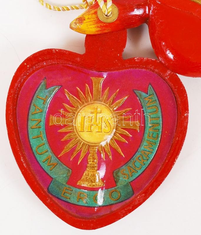 1938 Eucharisztikus emléktárgy. Széthajtható festett fa szív benne Sze...