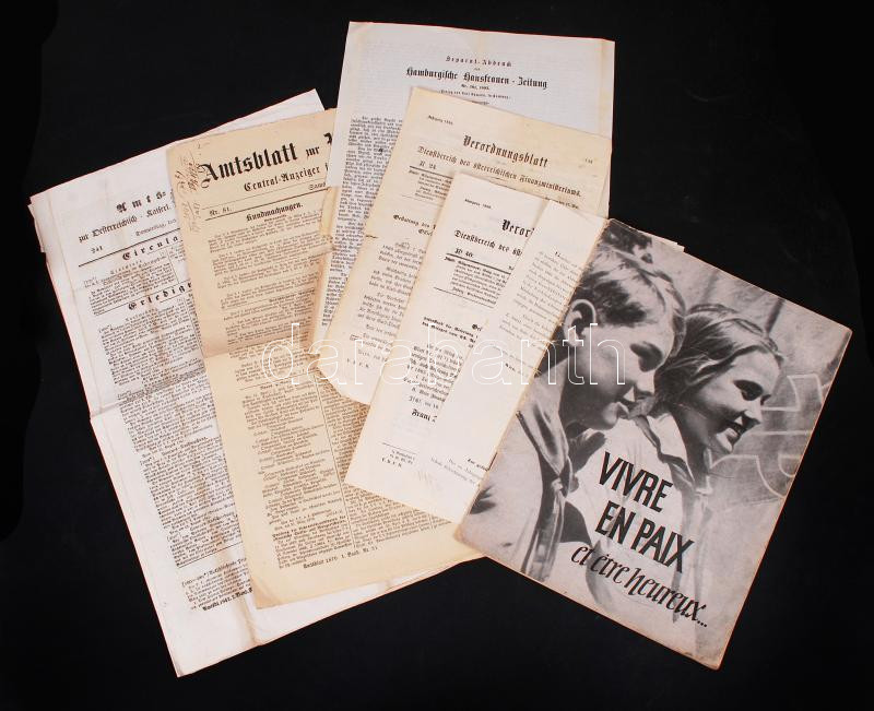 1842-1893 Osztrák újságok (4 db), Hamburgi háziasszonyok című újság, illetve francia újság (Vivre en paix) az 1950-es évekből.