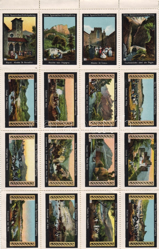 ca. 1910. A spanyol örökösödési háború, 32 klf. levélzáró / Spanischer Erbfolgekrieg, 32 versch. Vignetten