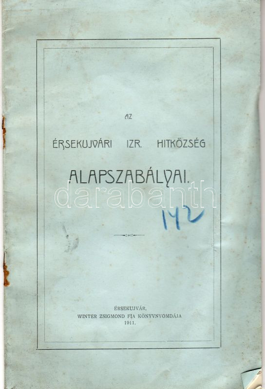 1911 Az érsekújvári izr. hitközség alapszabályai; Winter Zsigmond fia ... https://www.darabanth.com/en/2-Major-auction/2.1/Art-and-collectibles/~538/1911-Az-ersekujvari-izr-hitkozseg-alapszabalyai-Winter-Zsigmond-fia-nyomdaja-Grundregeln-~II38610