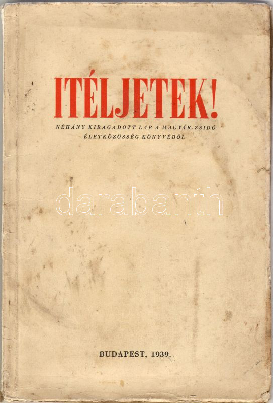 1939 Itéljetek! Néhány kiragadott lap a magyar-zsidó életközösség köny... https://www.darabanth.com/en/2-Major-auction/2.1/Art-and-collectibles/~538/1939-Iteljetek-Nehany-kiragadott-lap-a-magyar-zsido-eletkozosseg-konyvebol-Fallt-eine~II40919